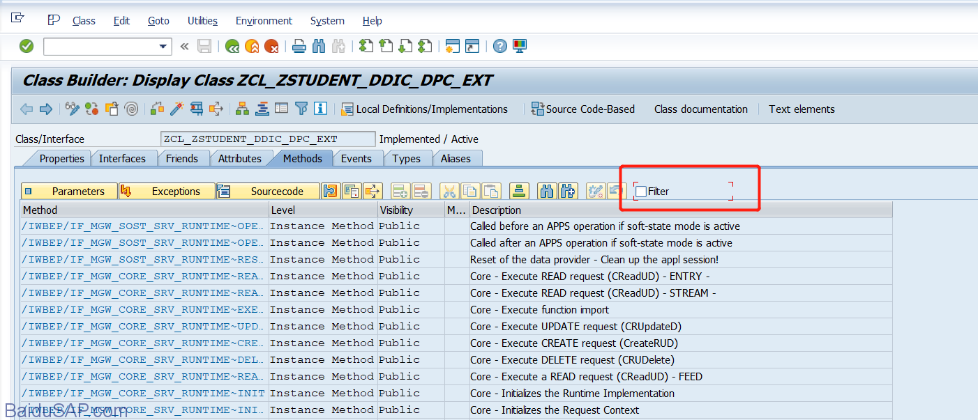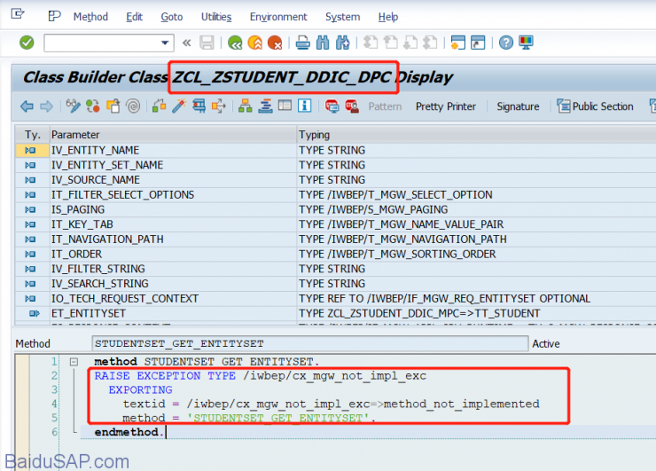 打开Methods -> Inherited Methods 右键点击method STUDENTSET_GET_ENTITYSET,选择Redefine