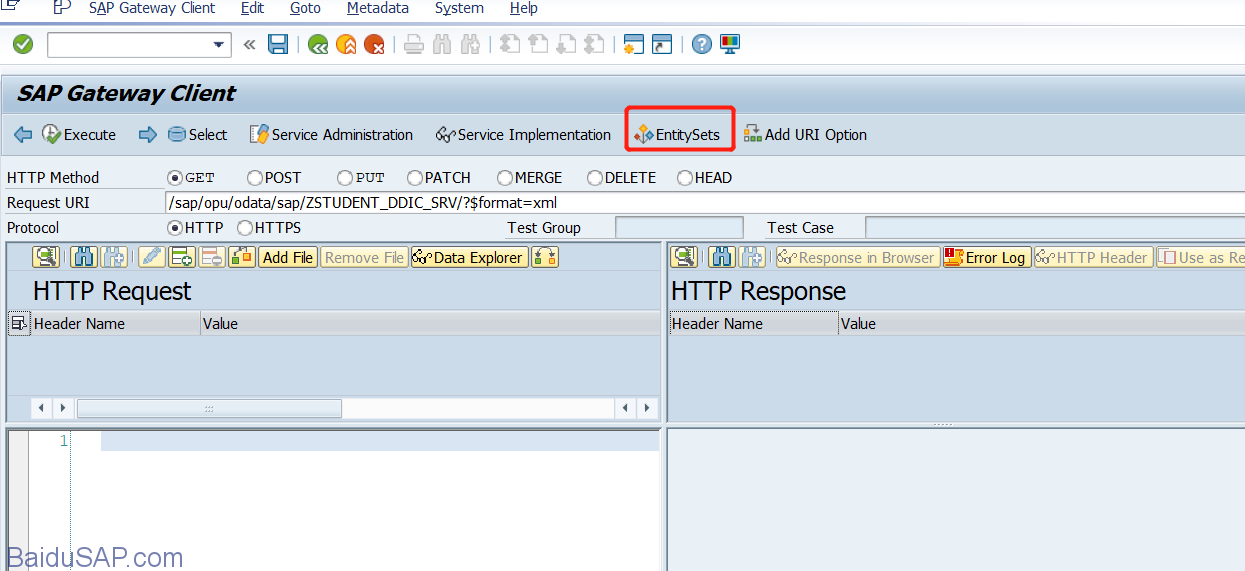 选中我们的服务,通过下面的SAP Gateway Client按钮进入我们的gateway界面: